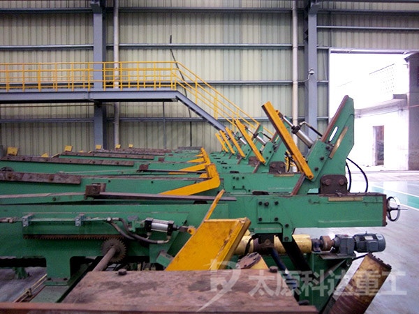 鋼管完成矯直、鋸切、檢驗(yàn)工序后開始進(jìn)入包裝工序,堆垛機(jī)采用自動(dòng)程序控制,能夠?qū)崿F(xiàn)鋼管上料、鋼管對(duì)齊、鋼管計(jì)數(shù)收集、鋼管成排橫移、鋼管成排上料、六角包堆垛、六角包橫移、稱重全過程的自動(dòng)化,然后由人工進(jìn)行打六角包、入庫。其目的是為了滿足流水線生產(chǎn)的成品入庫,改善員工現(xiàn)場(chǎng)的工作環(huán)境,提高工作效率和產(chǎn)品的包裝質(zhì)量。